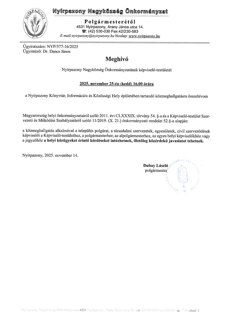 „Szeretlek Nyírpazony!” rendezvény megvalósítása