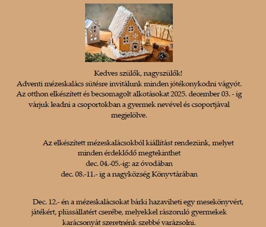 • Mézes-Mázas Adventi mézeskalácssütés a Nyírpazonyi Aranyalma Óvoda szervezésében!
