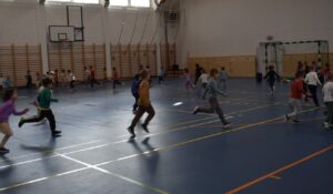A nagycsoportos és a középső csoportos gyerekek ellátogattak a sportcsarnokba, ahol vidám, játékos mozgásos feladatokban vehettek részt. A nagycsoportosok – a Pillangó, Napocska és Süni csoport – izgalmas váltóversenyeken mérték össze ügyességüket, míg a középső csoportosok – a Méhecske és Katica csoport – koruknak megfelelő játékos feladatokat próbálhattak ki. A kiscsoportosok – a Cica és Csiga csoport – sem maradtak ki a mozgás öröméből: ők az óvodában, életkorukhoz igazított játékos tornán vettek részt.