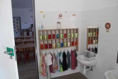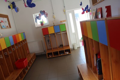 A meglévő vizesblokkok elbontásra kerülnek, a határoló válaszfalakkal együtt. Az átalakítás során kialakításra kerül 2 db fejlesztő szoba, valamint egy csoportszoba a hozzá kapcsolódó gyermek öltözővel és gyermek mosdóval. A szélfogó a meglévő fedett belépő nyílászárókkal történő lezárásával kerül kialakításra. A nyílászárók az akadálymentes közlekedést biztosítják. A válaszfalakat UW és CW profilú gipszkarton válaszfalakkal tervezzük, vizes helyiségekben impregnált kivitelben. A válaszfalak üveggyapot hangszigetelő anyaggal lesznek kitöltve. Az átalakítás során a gépészeti rendszerek is felújításra kerülnek. A meglévő radiátorok cseréje van előirányozva, valamint új radiátorok is lesznek elhelyezve. A vizes berendezési tárgyak elhelyezéséhez a padlóburkolatot is bontani szükséges, de csak minimális mértékben. A mennyezet gipszkarton álmennyezetet kap tűzgátló kivitelben. Az elektromos hálózat a meglévő csatlakozásról biztosítható, korszerű mennyezeti ledes lámpatestekkel, dugaljakkal és kapcsolókkal. A gyengeáramú hálózat a meglévő hálózathoz csatlakoztatandó. A falak 2 rtg páraáteresztő festést kapnak. A meglévő burkolat bontásra kerül és új burkolatok kerülnek kialakításra. A fejlesztő szobákban és a csoportszobában laminált parketta burkolat készül aljzatkiegyenlítésre. A többi helyiségben greslapburkolat készül, a mosdóban csúszásmentes kivitelben.