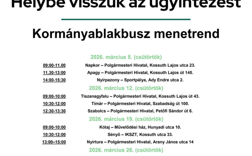 KÖZSZOLGÁLLÁS sorszám: 140005 Intézményi iktatószám: 201773001/00017-1/2026 ÁLLÁSPÁLYÁZAT NYÍRPAZONYI ARANYALMA ÓVODA, BÖLCSŐDE, CSALÁDI BÖLCSŐDE ÉS KONYHA pályázatot hirdet Munkaviszony (MT) keretében … More ÁLLÁSPÁLYÁZAT